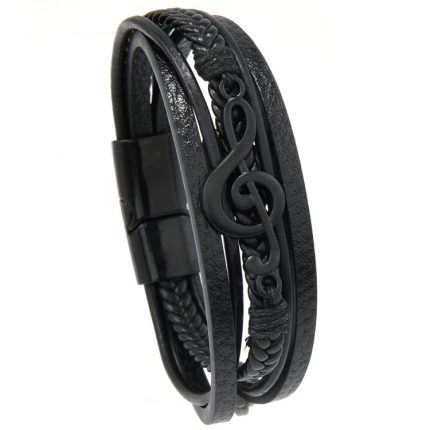 Men Braided Leather Bracelet with Musical Note Design, Magnetic Clasp Multi-Layer Wristband for Casual & Style
