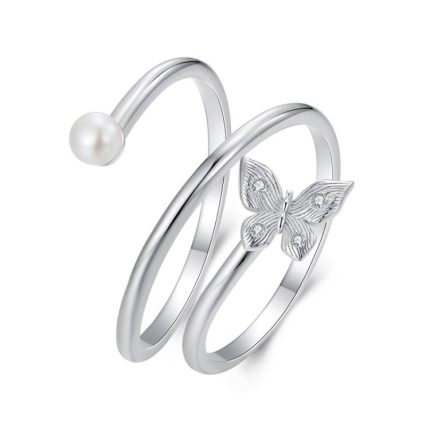 S925 Sterling Silber Platinierter mehrschichtiger verstellbarer Ring mit Schmetterlingswicklung