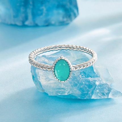 S925 Sterling Silber Platinierter Amazonit Ring