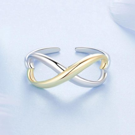 S925 Sterling Silber galvanisierter offener Ring mit Unendlichkeitssymbol und Herz, verstellbarer Ring