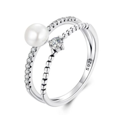 S925 Sterling Silber Natürliche Süßwasser Perle Doppel-schicht Ring Elegante Temperament Ring