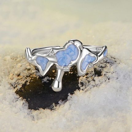 S925 Sterling Silber Schmelzender Schneeberg Offener verstellbarer Ring