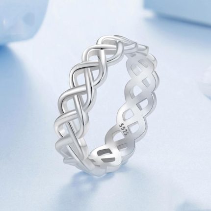 S925 Sterling Silber Platinierter geflochtener Hohlring