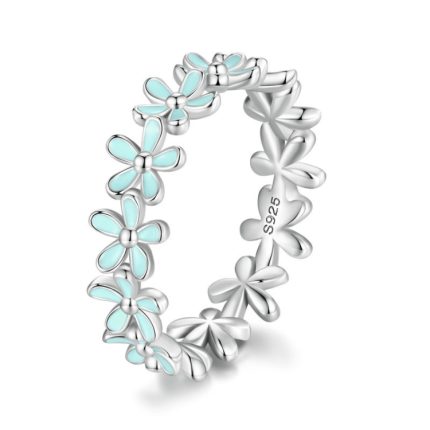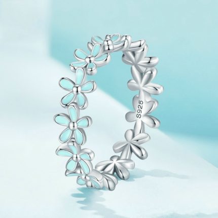 Verstellbarer Ring aus S925-Sterlingsilber, platiniert, mit Frischblumenöffnung