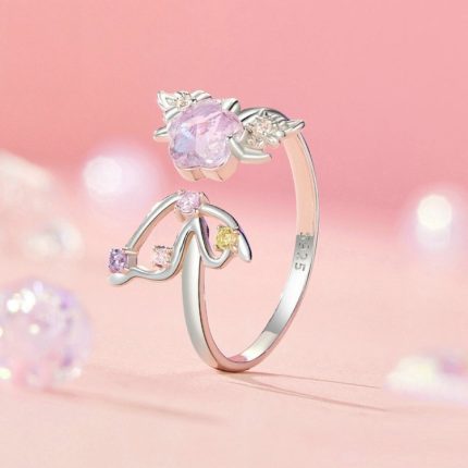 S925 Sterling Silber Romantischer Kirschblüten-Schmetterling Verstellbarer offener Ring