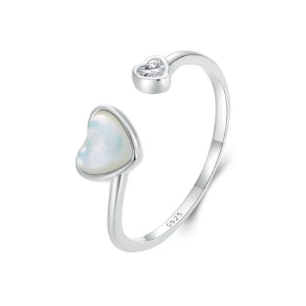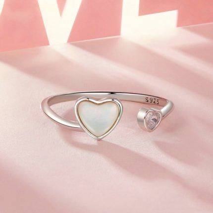S925 Sterling Silber platiniert White Shell Love Verstellbarer offener Ring