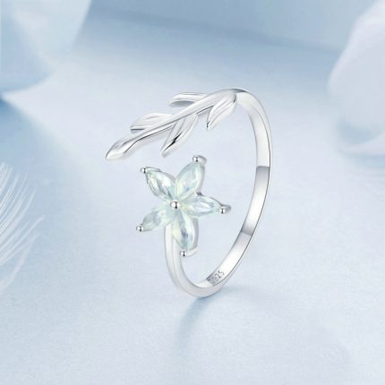 Verstellbarer offener Ring mit platinierten Smart Kingfisher Petals aus S925-Sterlingsilber