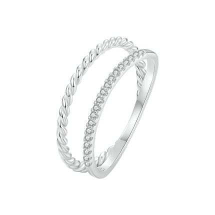 S925 Sterling Silber platinierter Twist-Doppelschichtring