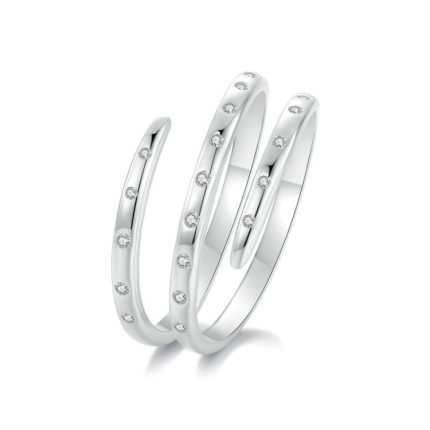 Offener, verstellbarer, schlichter Ring aus S925-Sterlingsilber mit platiniertem, gewickeltem Zirkon