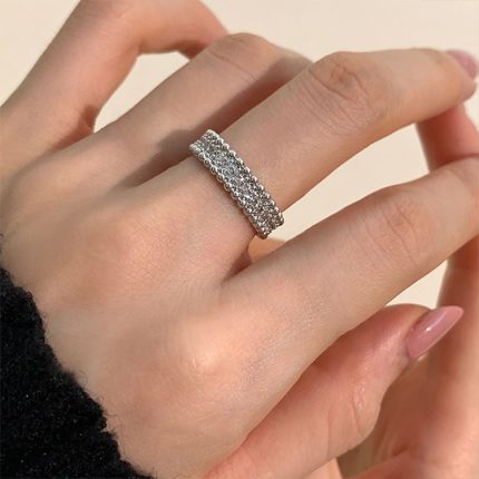 Offener, verstellbarer Doppelschicht-Ring aus S925-Sterlingsilber mit funkelndem Zirkon