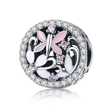 Ohrringe aus S925-Sterlingsilber mit platiniertem Kristall, Rosen-Schmetterling, heller Farbwechsel