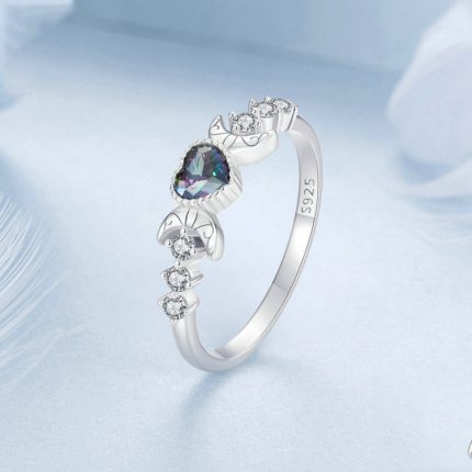 S925 Sterling Silber mit platiniertem Vintage herzförmigem Halbmondring
