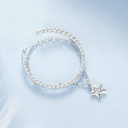 S925 Sterling Silber Kette Quaste Stern offener Ring