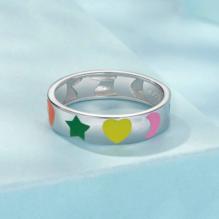 SCR1068 S925 Sterling Silber Überzogen mit Platin Farbe Tropf Öl Ring