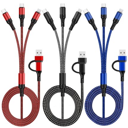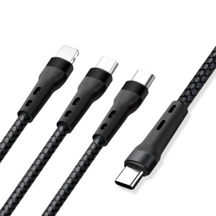 Geflochtenes 3-A-3-in-1-USB-auf-Typ-C-/8-Pin-/Micro-USB-Schnellladekabel, Kabellänge: 1,2 m