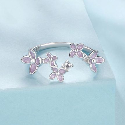 Eleganter offener verstellbarer Ring aus 925er Sterlingsilber mit Blumen- und Vogelmotiv