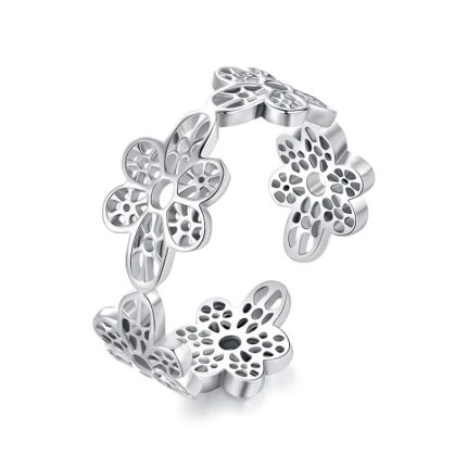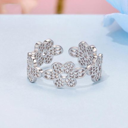 S925 Sterling Silber Hohlspitze Blume Öffnung Verstellbarer Ring