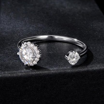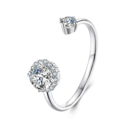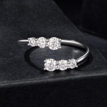 Offener verstellbarer Ring aus S925 Sterlingsilber mit glänzendem Moissanit