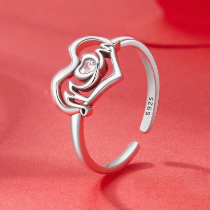 S925 Sterling Silber Muttertag Liebe Herz Offener verstellbarer Ring