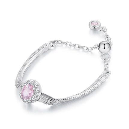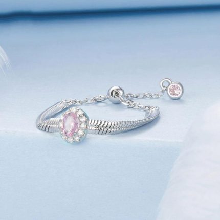 S925 Sterling Silver Soft Chain Pink Zircon Adjustable Ring