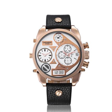 CAGARNY 6822 Men Watches Day Calendar Belt Dual Time Large Dial Quartz Watches