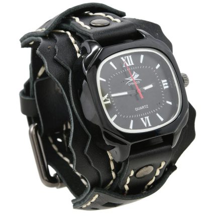 DPANCO W01478 Hand-Stitched Multi-Layered Men Cowhide Bracelet Watch Bold Punk Rock Chain Wristband Accessory