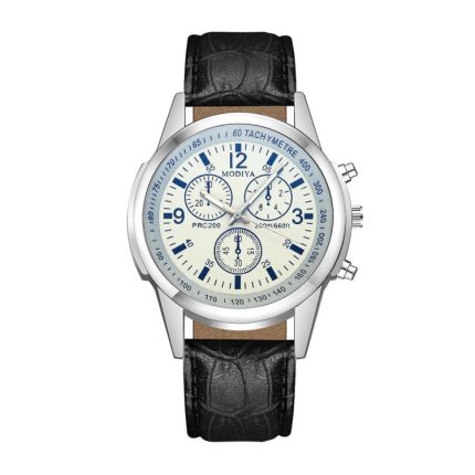 MODIYA Blue Glass Leather Strap Men Quartz Watch