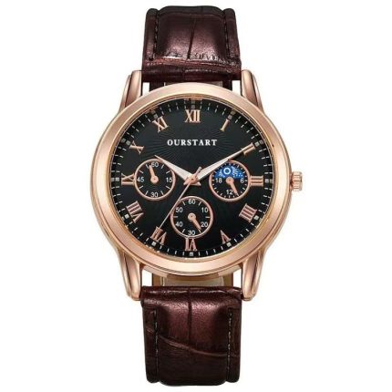 OURSTART Men 3-Eye Decorative Quartz Leather Strap Watch