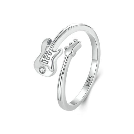 S925 Sterling Silber Oxidierter Gitarrenförmiger Ring Öffnungsring Schmuck