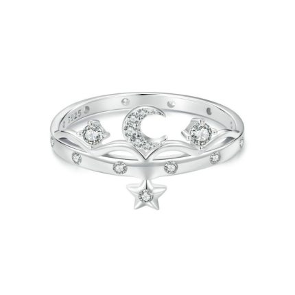 SCR1046 S925 Sterling Silber Platinierter romantischer Stern- und Mondring