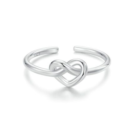 S925 Sterling Silber Oxidierter Herz der Nacht Offener Ring Verstellbarer herzförmiger Ring