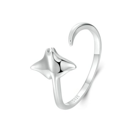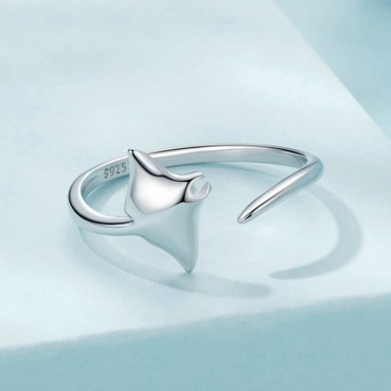 S925 Sterling Silber Platinierter Ozean Manta Ray Verstellbarer offener Ring