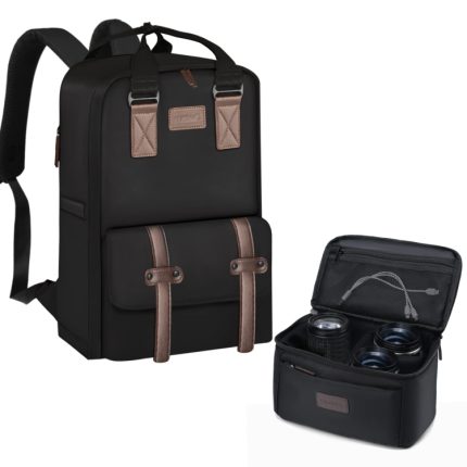 Cwatcun D89 Kamerarucksack, wasserdichte Lederfolie, 15,6 Laptop-Hülle, 43.5 x 33 x 22.5cm