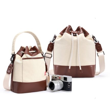 Cwatcun D100 Canvas PU wasserdichtes Bundle Kordelzug Objektivtasche Umhängetasche Kameratasche, 20 x 11 x 26cm, 22 x 12 x 31cm