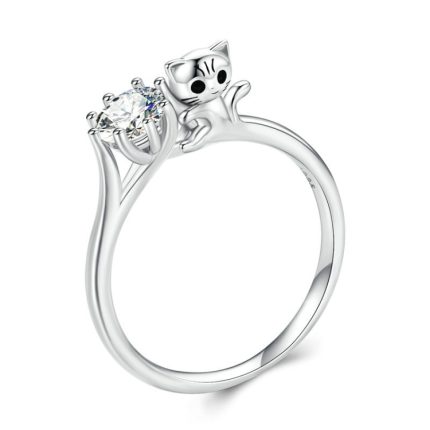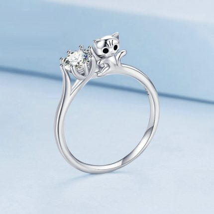 Sterling Silber S925 Katze Zirkon platinierter Tierring