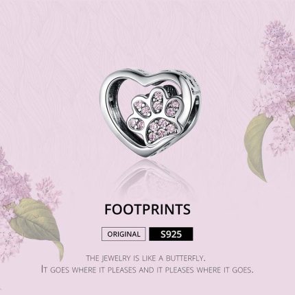 S925 Sterling Silber herzförmige Haustier Pfotenabdruck Perlen DIY Armband Perlen Zubehör