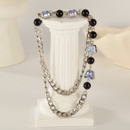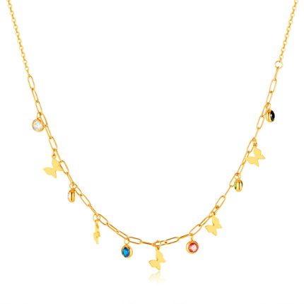 Bunte Dopamin Zirkonia Edelstahl Stereo Schmetterling Anhänger Halskette