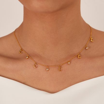 Schlichter Mondanhänger aus Edelstahl mit Zirkonia-Schlüsselbeinkette