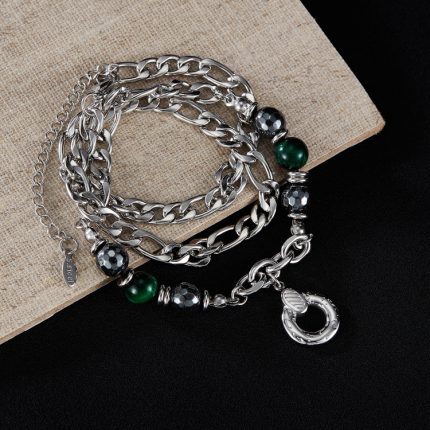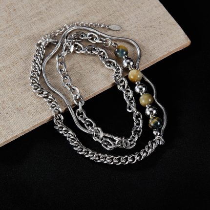 Personalisierte, einfache Edelstahl-Doppelschichtkette mit Tigerauge-Stein-Halskette