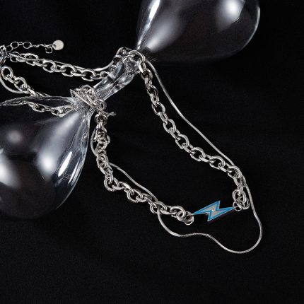 Doppelreihige Halskette mit Blitzanhänger aus Edelstahl