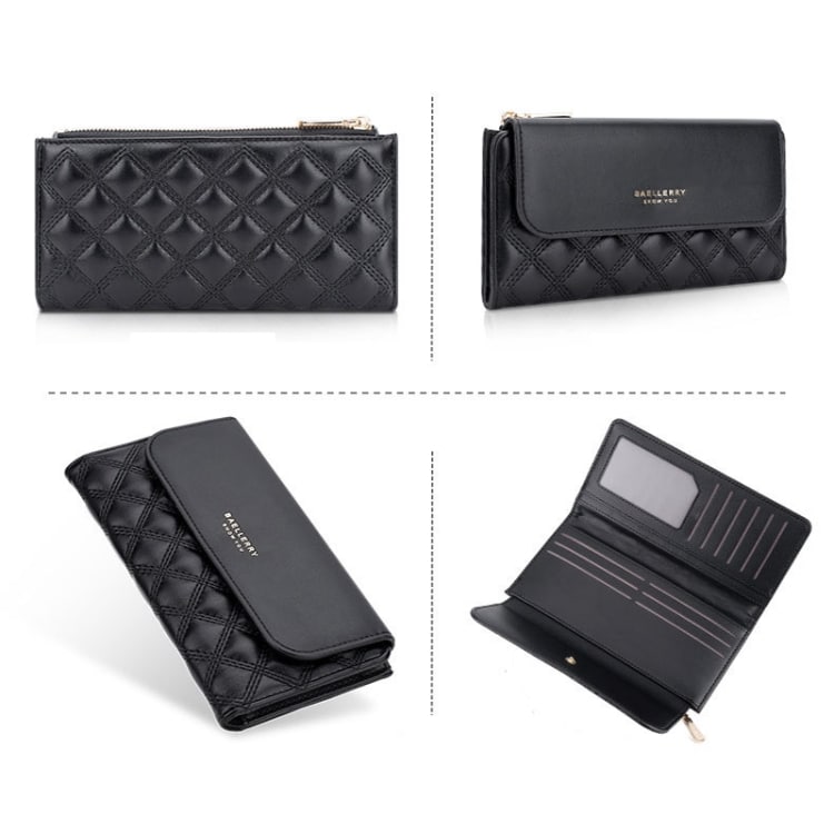 Baellerry N2403 Lange Damenbrieftasche mit mehreren Kartenfächern, großes Fassungsvermögen, dreifach faltbare Clutch, Black, Black White, Pink, Brown