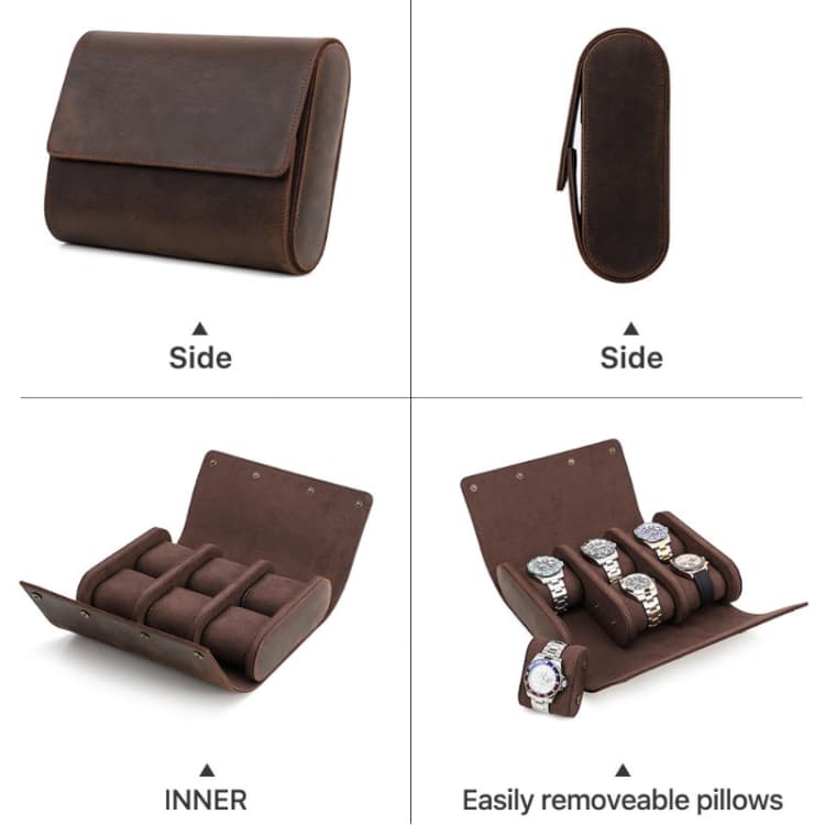 Kontakte Familie CF1121 Retro Crazy Horse Lederuhr Aufbewahrungsbox Einzeluhr Sitz Tragbare Uhr Reißverschlusstasche, CF1121