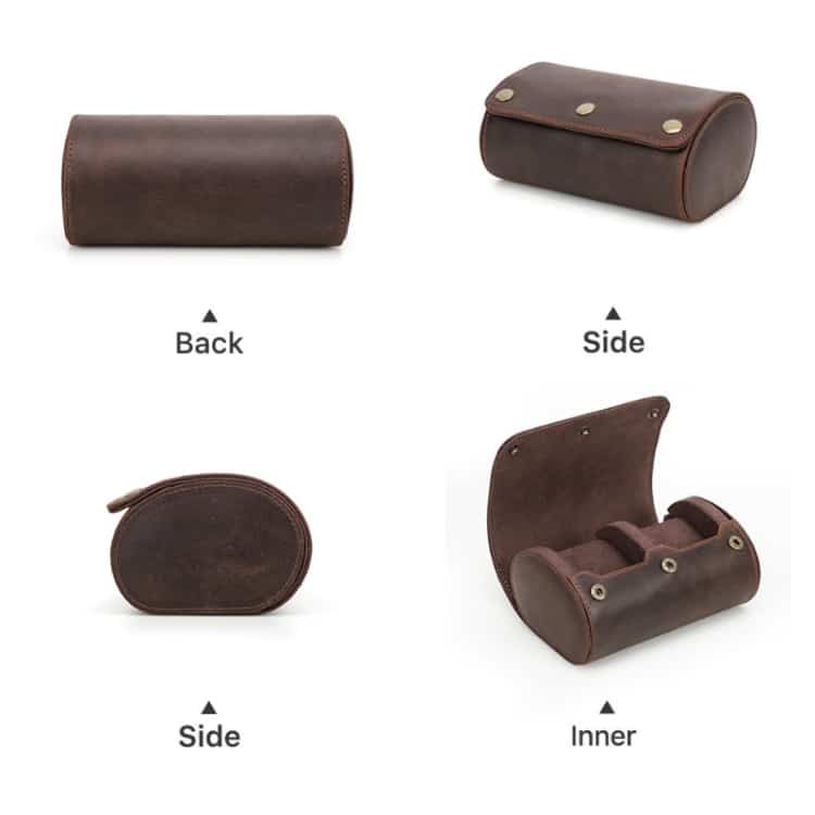 Contacts Family CF1117B 3 Uhrenpositionen Leder-Uhrenbox mit runder Schnalle Outdoor-Reise-Uhrenaufbewahrungsbox, CF1117A