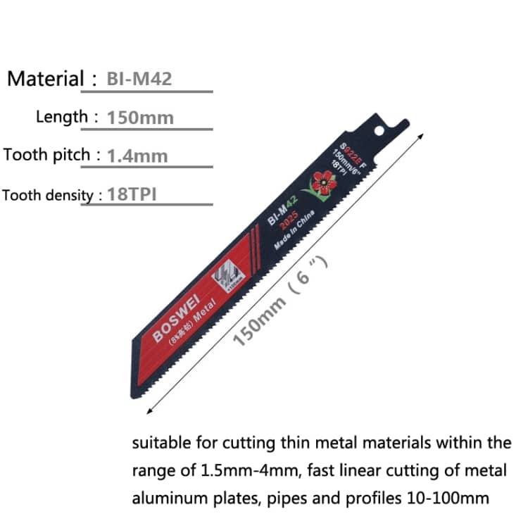 BOSWEI Hardcore-Säbelsägeband, feine Zähne, Säbelsägeblatt, Metall, Kunststoff, Holz, Bimetall-Kurvensägeblatt, S922EF, S1122BF, S1122EF, S1222BF, S1222EF