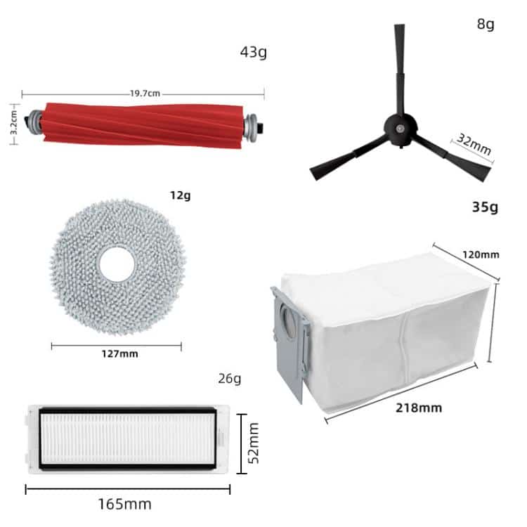 Zubehör für Roborock S7/T7S/T7S Plus G10, Main Brush, Filter, Dust Bag National, Water Tank, Dust Box, Mop Stand, Disposable Mop, Dust Bag US Version, Main Brush Cover, Sterilizing Wipes