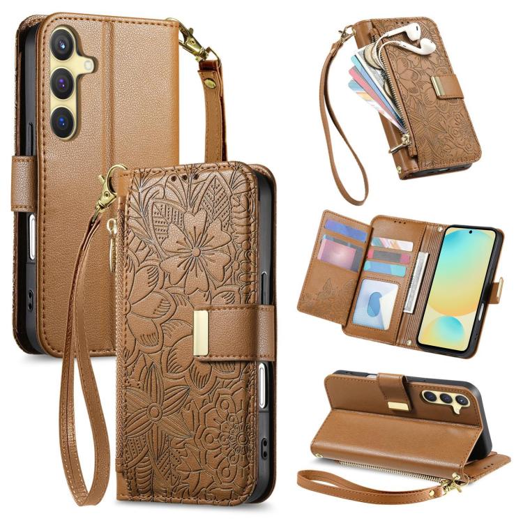 Flowers Leaves Zipper Wallet Leather Phone Case with Strap