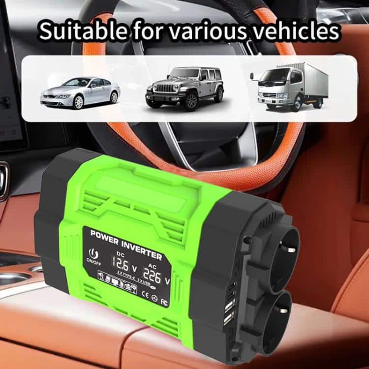 Gurxun Dual Digital Display Auto Wechselrichter mit 2 USB + 2 Typ-C Ports, Universal Plug 220V, Universal Plug 110V, Brazil Plug 220V, Brazil Plug 110V, US Plug 110V