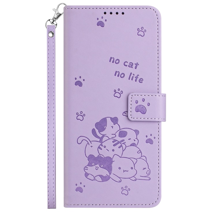 Leder-Telefonhülle mit geprägtem Kätzchenmotiv und Umhängeband, For iPhone 15 Pro