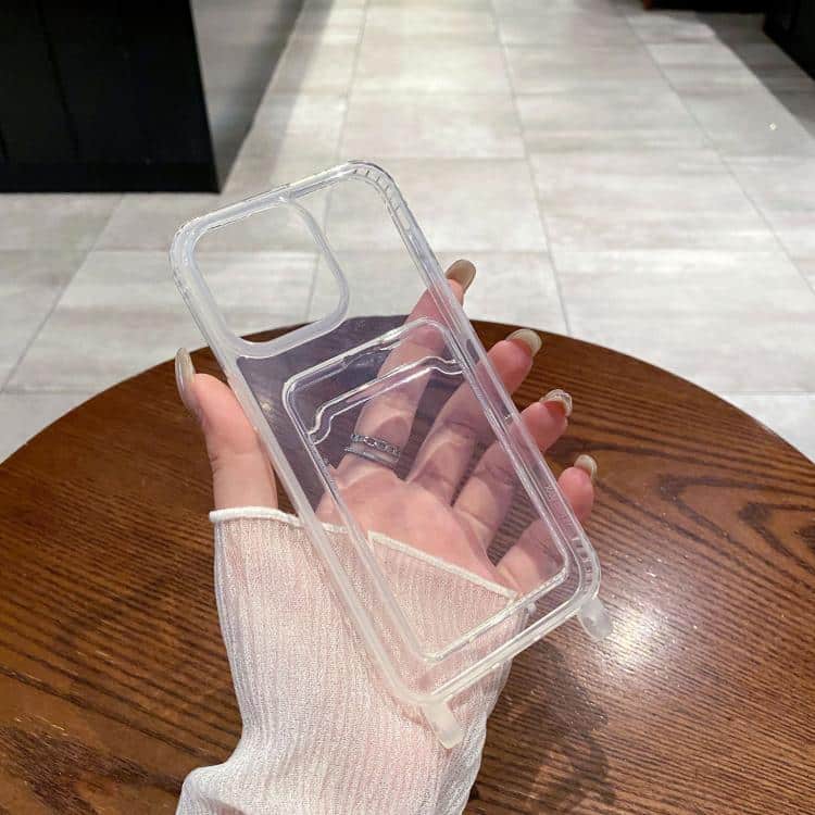 Transparent Card Slot TPU Phone Case with Lanyard Hole, For iPhone 16 Pro Max, For iPhone 16 Pro, For iPhone 16 Plus, For iPhone 16, For iPhone 15 Pro Max, For iPhone 15 Pro, For iPhone 15 Plus, For iPhone 15, For iPhone 14 Plus, For iPhone 14…