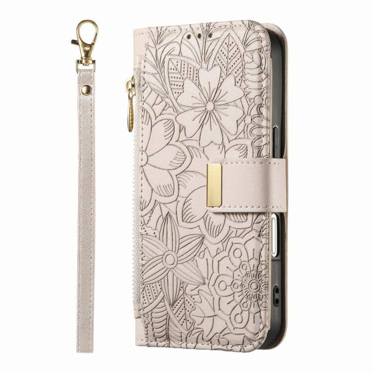 Flowers Leaves Zipper Wallet Leather Phone Case with Strap, For iPhone 15 Pro Max, For iPhone 15 Pro, For iPhone 15 Plus, For iPhone 15